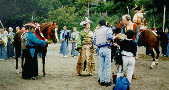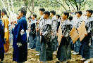 1. Crowds arriving (note mounted archer sculpture at entrance to Ana-Hachiman Shrine)