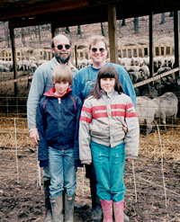 The Rickards are very unusual farmers because Bruce and Lisa were once business people at AT&T and they gave that up to start farming. The Rickards had to teach themselves how to farm. They did this through reading and lots of trial and error. They have been raising sheep for nine years now. They started out with just nine ewes and now they have 330 plus some cows! The Rickards are low-impact farmers so they always try to leave their farm in better conditon then when they bought it. Farming is the only income in the Rickard family. This means they have had to simplify their lives and do without some things, but they think it is worth it. The family is together all the time because the children Hanna and Jess are home-schooled and their farm is their classroom.