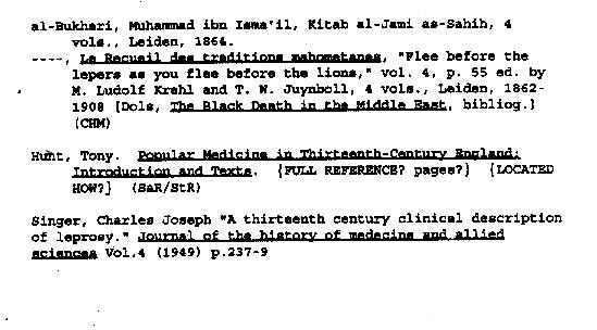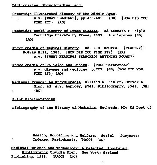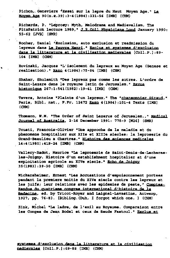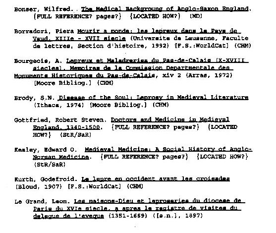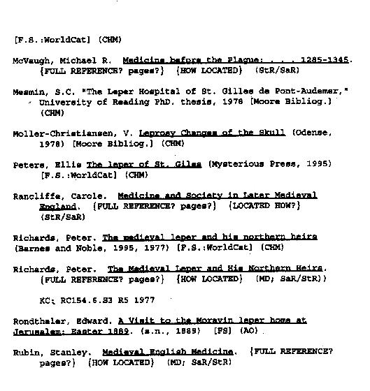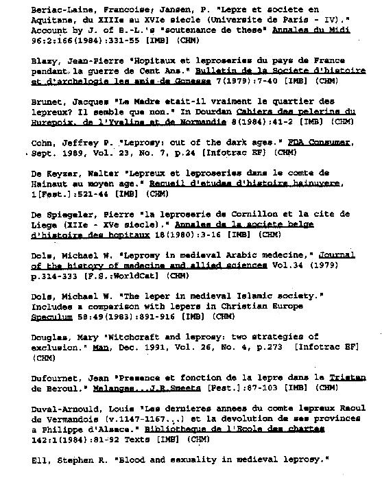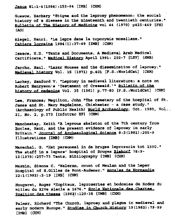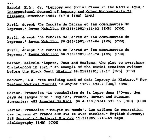 Bibliography of Leper-related subject matter composed by Kenyon College's 1995-1996 History 84 class: